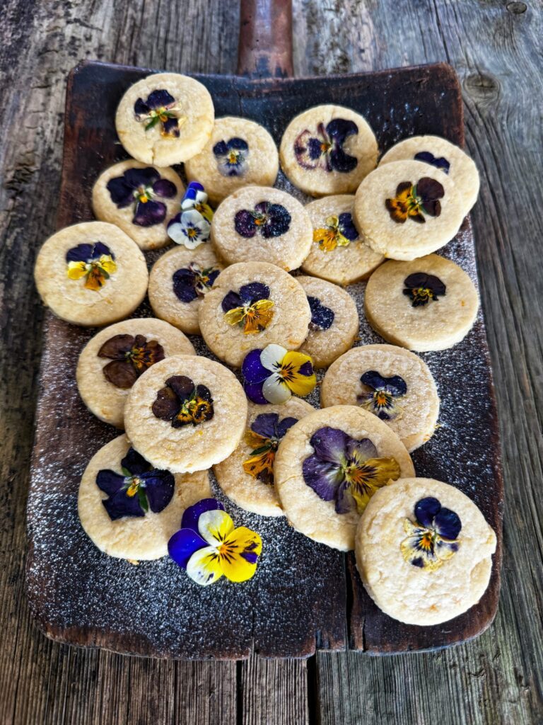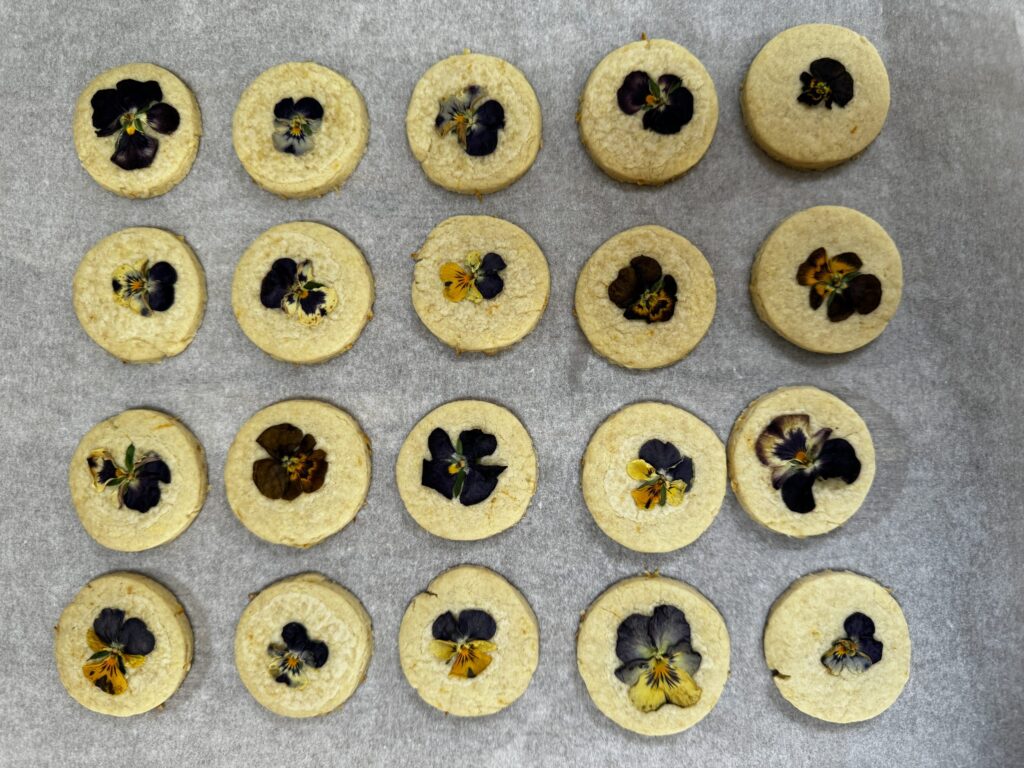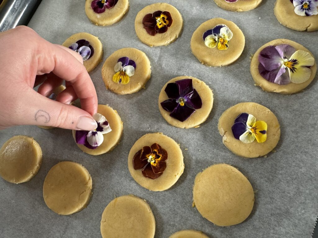 Home > Growing tips & recipes > Spring Flower Lemon Shortbread Biscuits 5 min read 18.04.2024 Spring Flower Lemon Shortbread Biscuits Jump to topic Nutritional Information Ingredients Method Shop the seeds from this recipe You couldn’t ask for a much prettier or more sophisticated little biscuit than these, though that doesn’t mean that you won’t still be fighting your kids for who gets the last one. The delicate spring flower decoration is matched by the wonderful citrus top notes of this buttery biscuit delight. 12+ biscuitsPrep time: 10 minsCooking time: 30 minsNutritional Information (approx.) Per servingkcal128fat6.9gsaturates4.3gcarbs15gsugars4.2gfibre0.4gprotein1.4gsalt0.06gIngredients100g salted butter 50g golden caster The zest of one large lemon 175g plain flour Violas and Pansies to decorateMethodPreheat oven to 130c Place the butter in a mixing bowl and beat with a wooden spoon until soft. Add the sugar and continue to beat until well combined. Grate the lemon zest into the bowl with the butter and sugar mixture and combine thoroughly. Add the flour to the mixture, and stir in. Once the flour is fairly well mixed in, start to knead the mixture with your hands until you have a ball of dough. Sprinkle icing sugar across a clean surface and roll out the dough with a rolling pin so it is a little thicker than a pound coin. Cut out your biscuits into your preferred shapes and place them onto a baking tray lined with greaseproof paper. Bake for 30 minutes and set aside to cool. They should firm up once fully cooled. Chef’s NotesWork quickly with your dough if the weather is warm, you can always chill it if you’re struggling to roll it out. Any edible flowers can be used in this recipe but violas and pansies are our favourite. Shop The Seeds From This Recipe Viola Brush Strokes £2.95 Add to wishlist 202 in stock Viola Brush Strokes quantity Add to Trug How to grow this seed Pansy Giant Black £2.50 Add to wishlist 108 in stock Pansy Giant Black quantity Add to Trug How to grow this seed Nasturtium Purple Emperor £2.95 Add to wishlist 118 in stock Nasturtium Purple Emperor quantity Add to Trug How to grow this seed Meet the author Nelly Nelly works in the She Grows Veg marketing department and is an incredible cook! She's learning how to grow veg fast in her very own container garden. Her favourites so far are the Dwarf Sunflower called 'Sunspot' and our Dwarf Pea called 'Tom Thumb'. Previous How to Sow and Grow Beans Next How to Sow and Grow Courgettes
